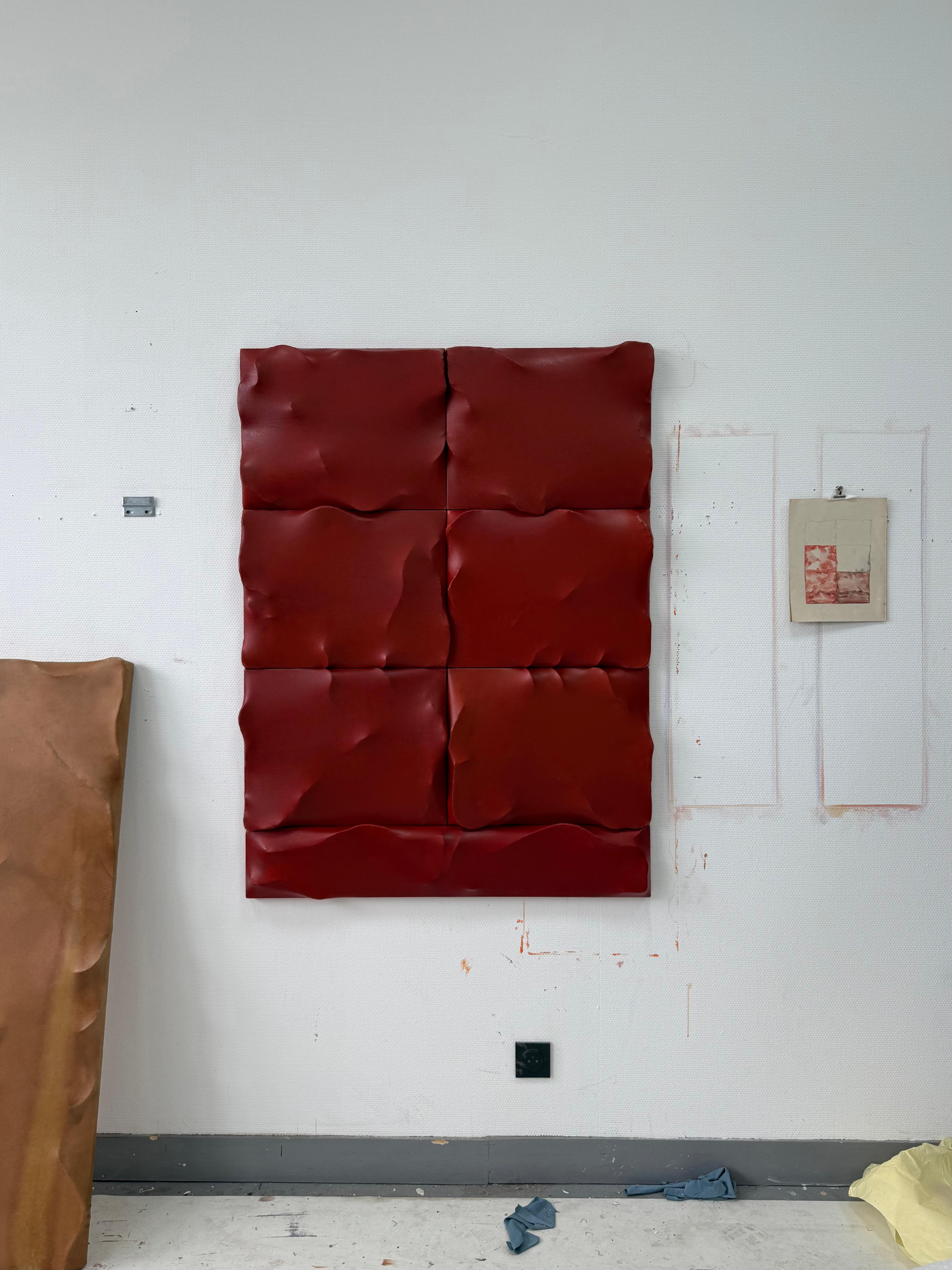 Bois, metal, papier, textile, acrylique, vernis, cuir, pigments
