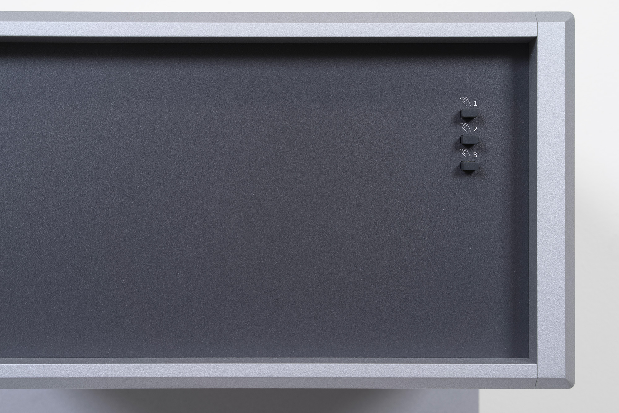 Aluminium, engraving, rubber buttons, PUR paint, screws