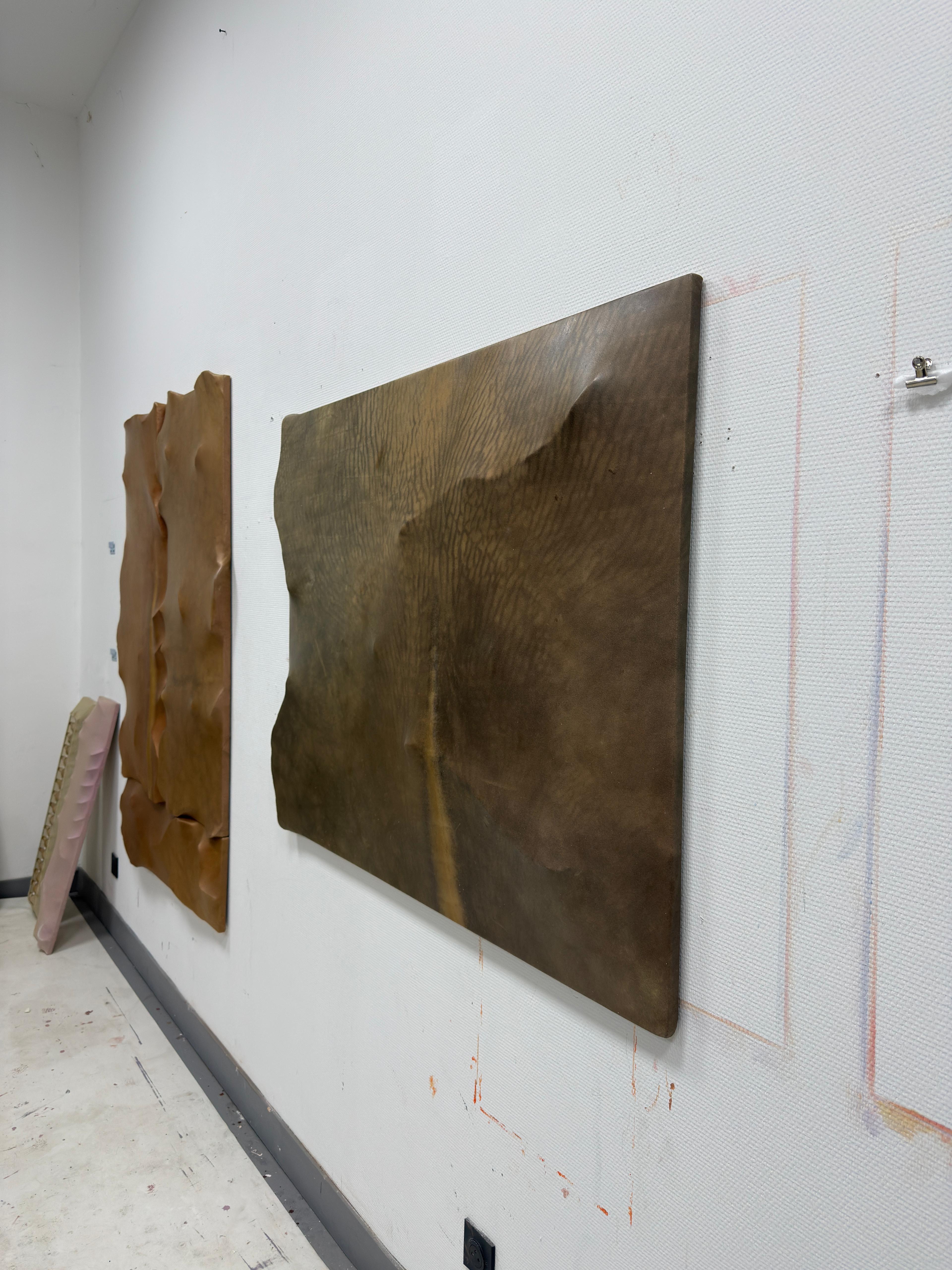 Bois, métal, papier, textile, acrylique, vernis, cuir, pigments